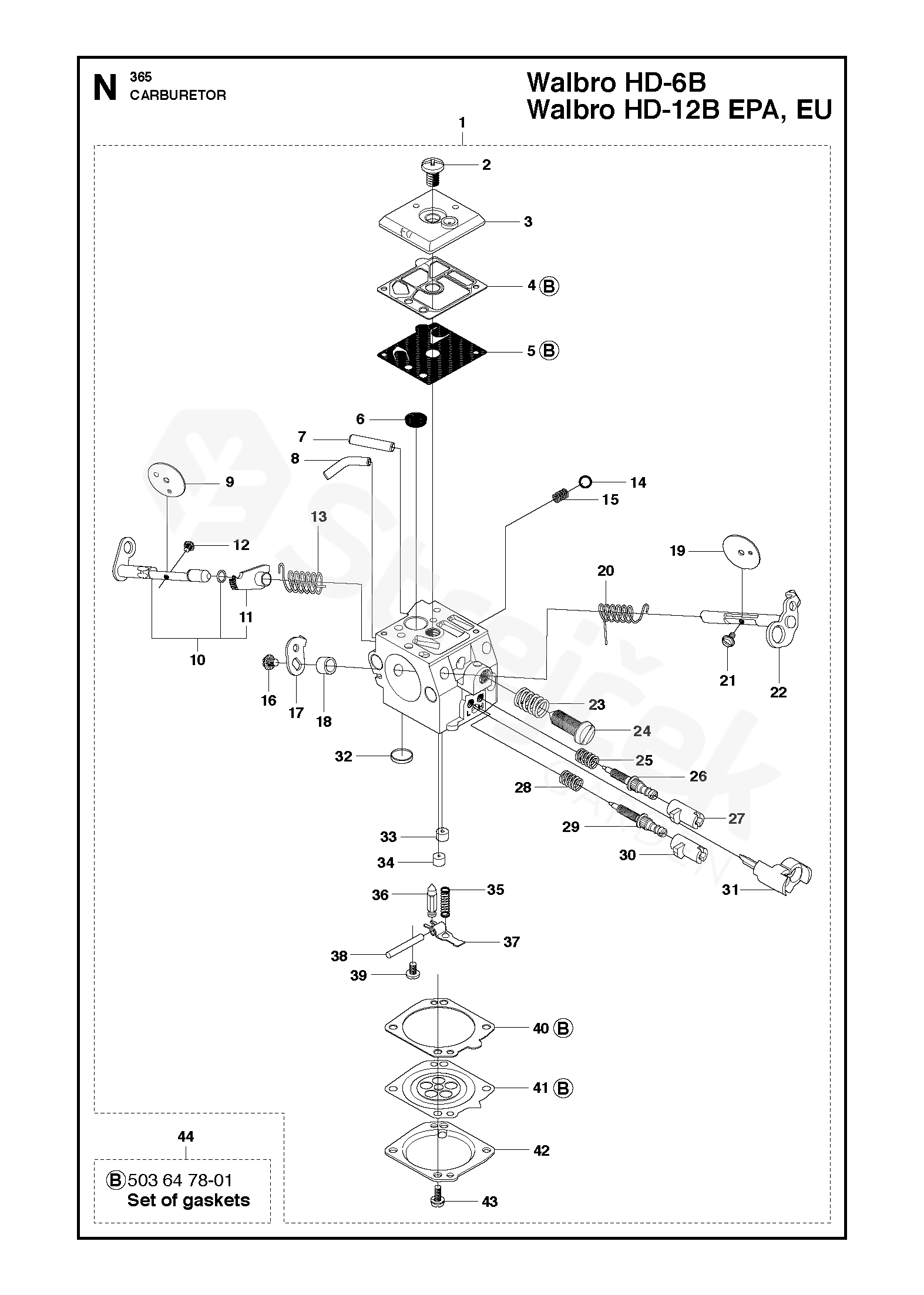 B = sada těsnění