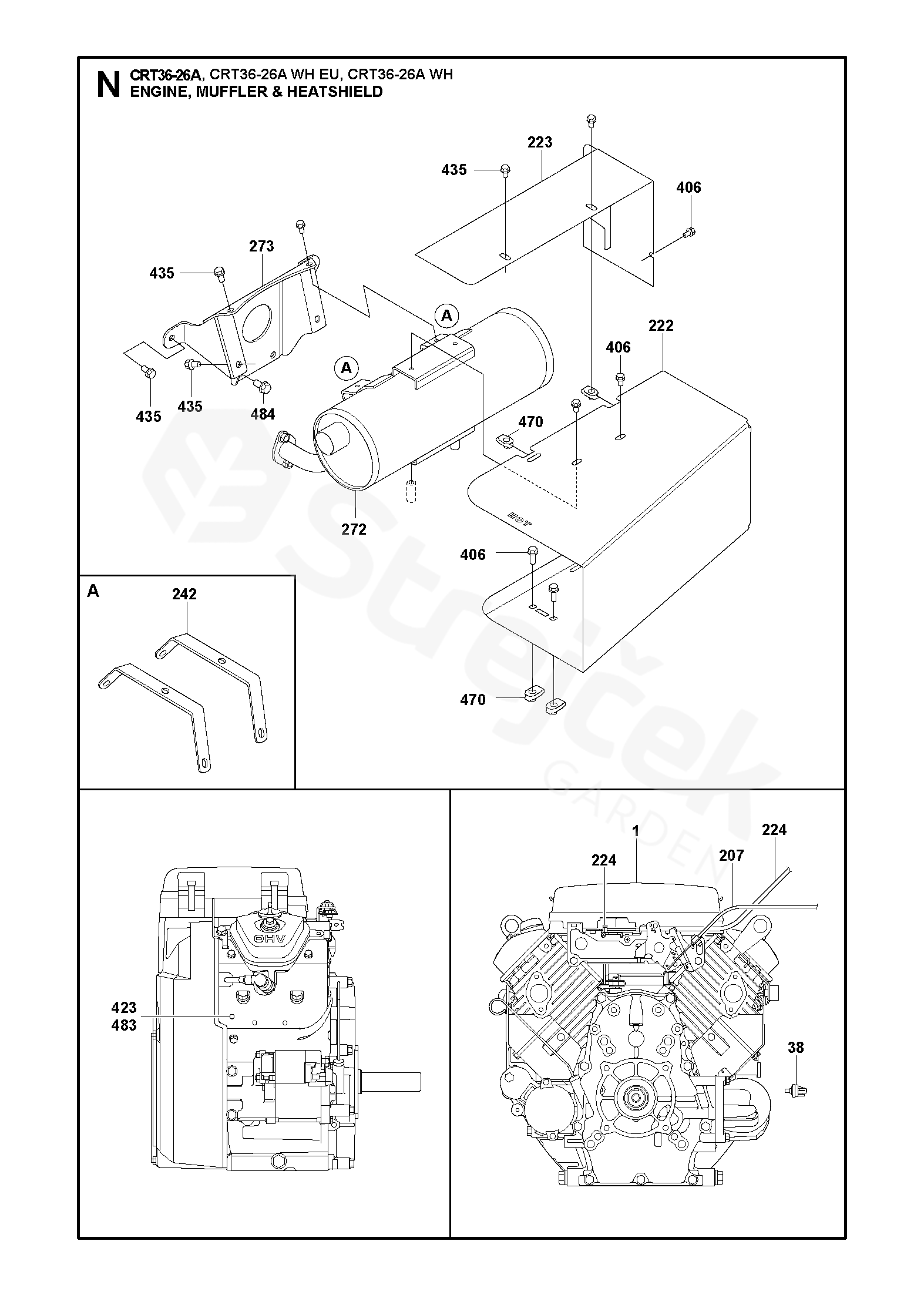 ENGINE, MUFFLER & HEATSHIELD